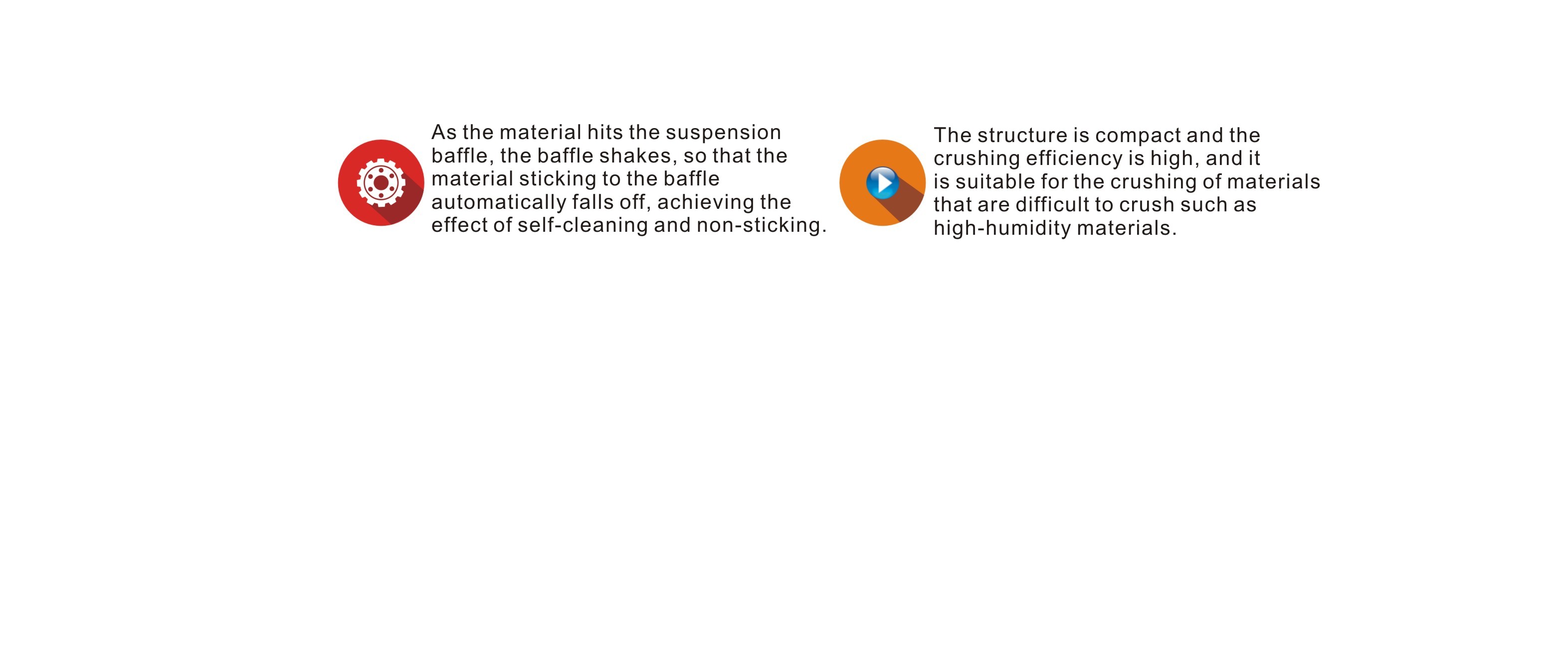 Since this high-moisture material is not pulverized and cannot be granulated with inorganic raw materials to produce granular organic and inorganic fertilizers, the high-moisture material pulverizer includes a feeding port, a discharging port and a shell. The core part consists of one large, two small, three It is composed of knife rollers. The main knife roller is used to pulverize the material. The two auxiliary knife rollers at the bottom not only play the role of pulverization, but also control the material flow, and push the incompletely pulverized materials back to the main knife roller to continue pulverizing. A movable baffle is suspended in the inner cavity of the pulverizer along the rotation direction of the knife roller. When the material hits the suspension baffle, the baffle vibrates, so that the material adhered to the baffle automatically falls off, achieving the effect of self-cleaning and non-sticking. . The structure is compact and the crushing efficiency is high, and it is suitable for the crushing of materials that are difficult to crush such as high-humidity materials.